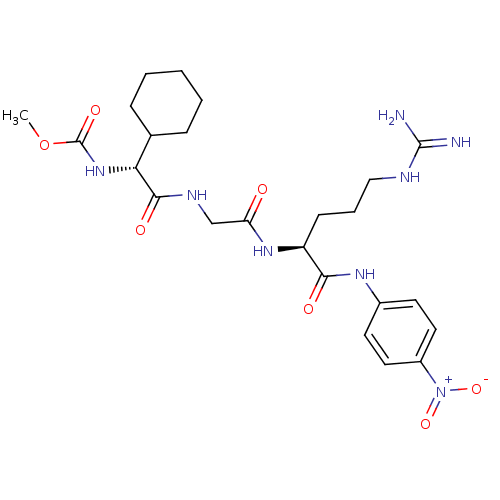 COC(=O)N[C@H](C1CCCCC1)C(=O)NCC(=O)N[C@@H](CCCNC(N)=N)C(=O)Nc1ccc(cc1)[N+]([O-])=O |r|