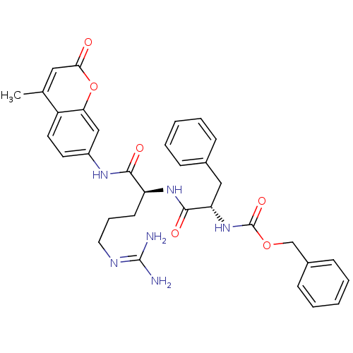 Benzyloxycarbonyl (Z)-Phe-Arg 7-(4-methyl)coumarylamide (-NMec) | CBZ-Phe-Arg-AMC | benzyl N-[(1S)-1-{[(1S)-4-carbamimidamido-1-[(4-methyl-2-oxo-2H-chromen-7-yl)carbamoyl]butyl]carbamoyl}-2-phenylethyl]carbamate | Z-Phe-Arg-NMec