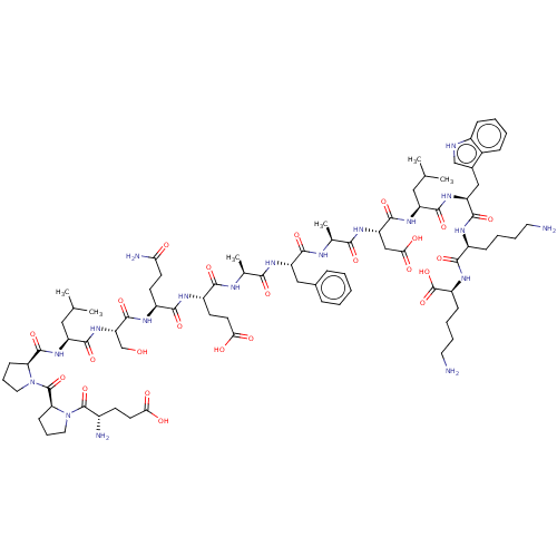 CC(C)C[C@H](NC(=O)[C@H](CC(O)=O)NC(=O)[C@H](C)NC(=O)[C@H](Cc1ccccc1)NC(=O)[C@H](C)NC(=O)[C@H](CCC(O)=O)NC(=O)[C@H](CCC(N)=O)NC(=O)[C@H](CO)NC(=O)[C@H](CC(C)C)NC(=O)[C@@H]1CCCN1C(=O)[C@@H]1CCCN1C(=O)[C@@H](N)CCC(O)=O)C(=O)N[C@@H](Cc1c[nH]c2ccccc12)C(=O)N[C@@H](CCCCN)C(=O)N[C@@H](CCCCN)C(O)=O |r|