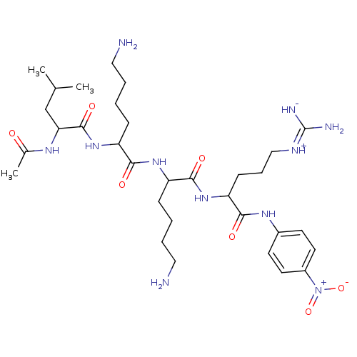 CC(C)CC(NC(C)=O)C(=O)NC(CCCCN)C(=O)NC(CCCCN)C(=O)NC(CCC\[NH+]=C(\N)[NH-])C(=O)Nc1ccc(cc1)[N+]([O-])=O